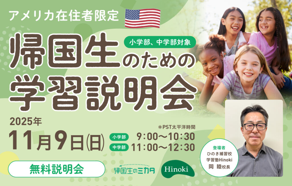 【アメリカ在住者限定】帰国生のための学習説明会(小学部、中学部対象)