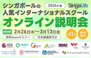 教育都市シンガポールにおける最新インター校を知るチャンス!今年もインターナショナルスクールのオンライン説明会を開催します。シンガポールで人気のインターナショナルスクール11校が日替わりで登場し、各校の特色や教育方針、学校 … 続きを読む シンガポールの人気インターナショナルスクール11校!2026年 最新オンライン説明会(無料・日本語通訳付き)