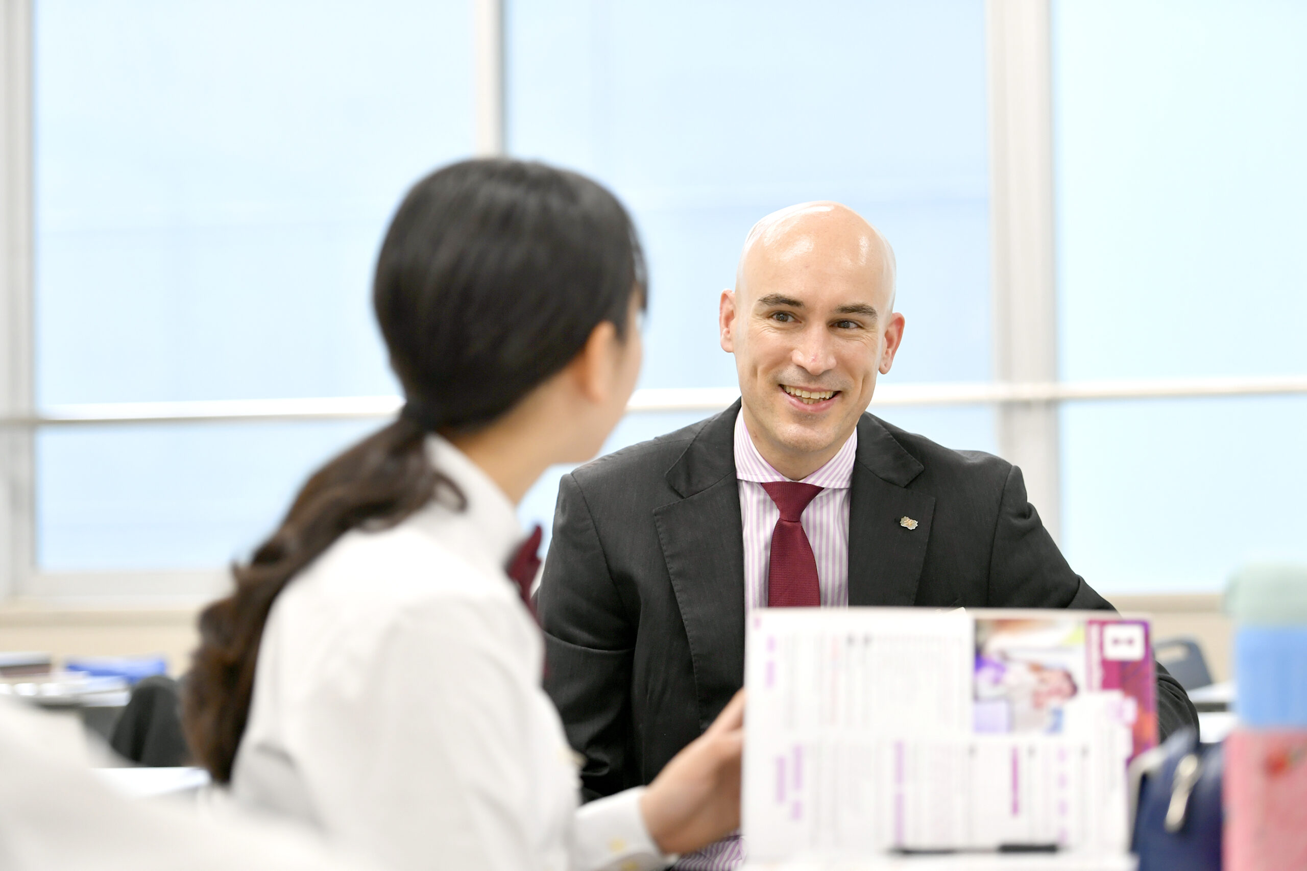 インターナショナルコースは、1つのクラスが主に帰国生を中心としたアドバンストグループ(AG)と、これから高い英語力を習得したいスタンダードグループ(SG)の2つのグループが混成されているので、互いの良いところを引き出しあいながら成長していくことができます。日本人の先生と外国人の先生のダブル担任制なので、悩みを日本語でうまく表現できないときには外国人担任の先生に英語で相談することができるので安心です。