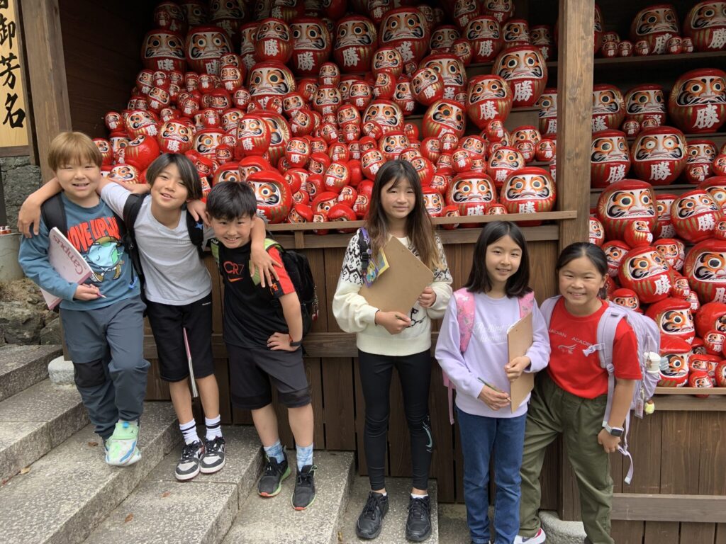 例えば、4年生は「私たちは誰か」というテーマ学習の一環として大阪・勝尾寺を訪れ、信念や価値観がコミュニティ形成に与える影響を探究しました。